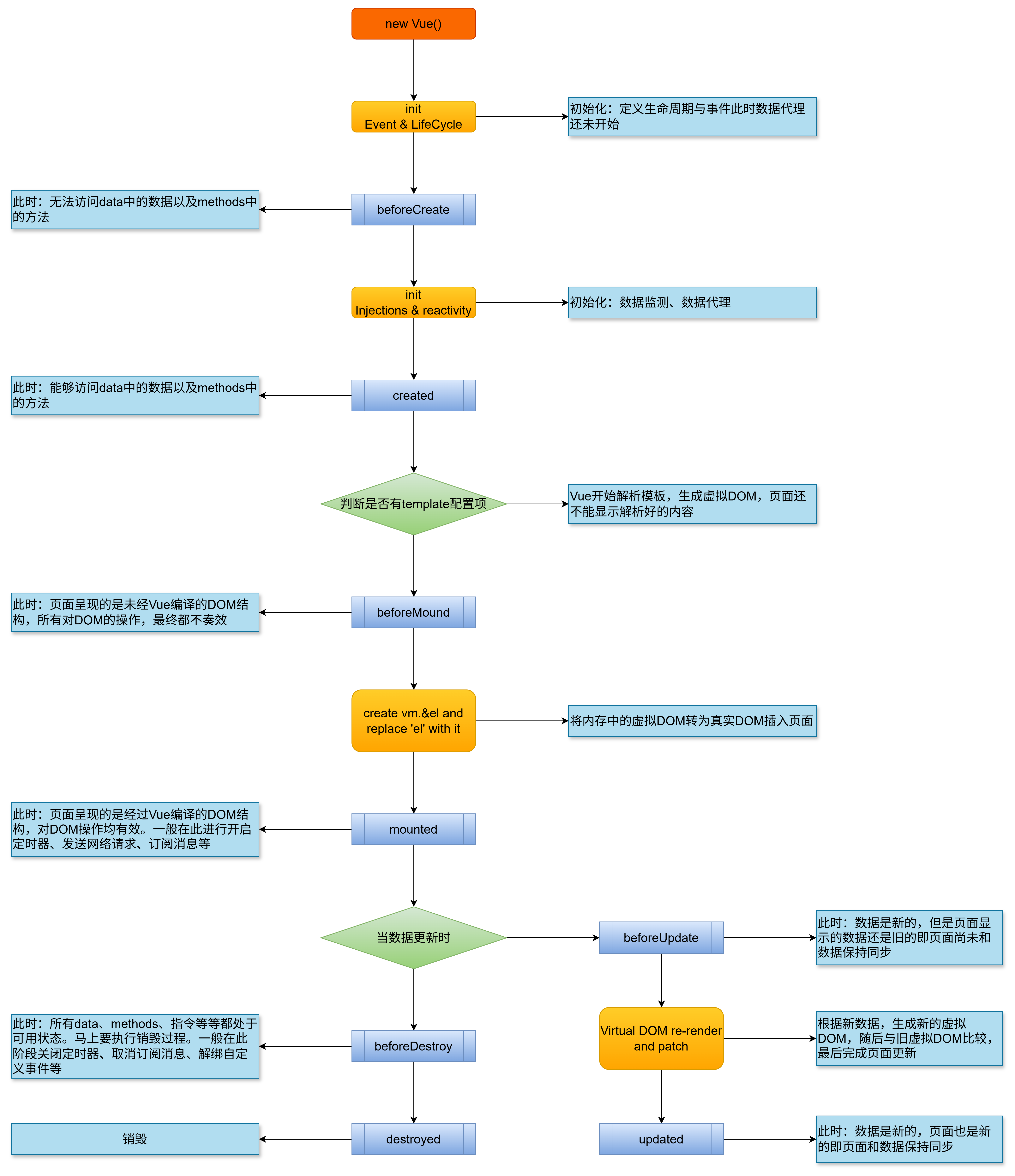 答:Vue的生命周期是指从Vue实例创建、挂载、更新、销毁到最终回收的完整过程中不同阶段所能调用的不同函数。