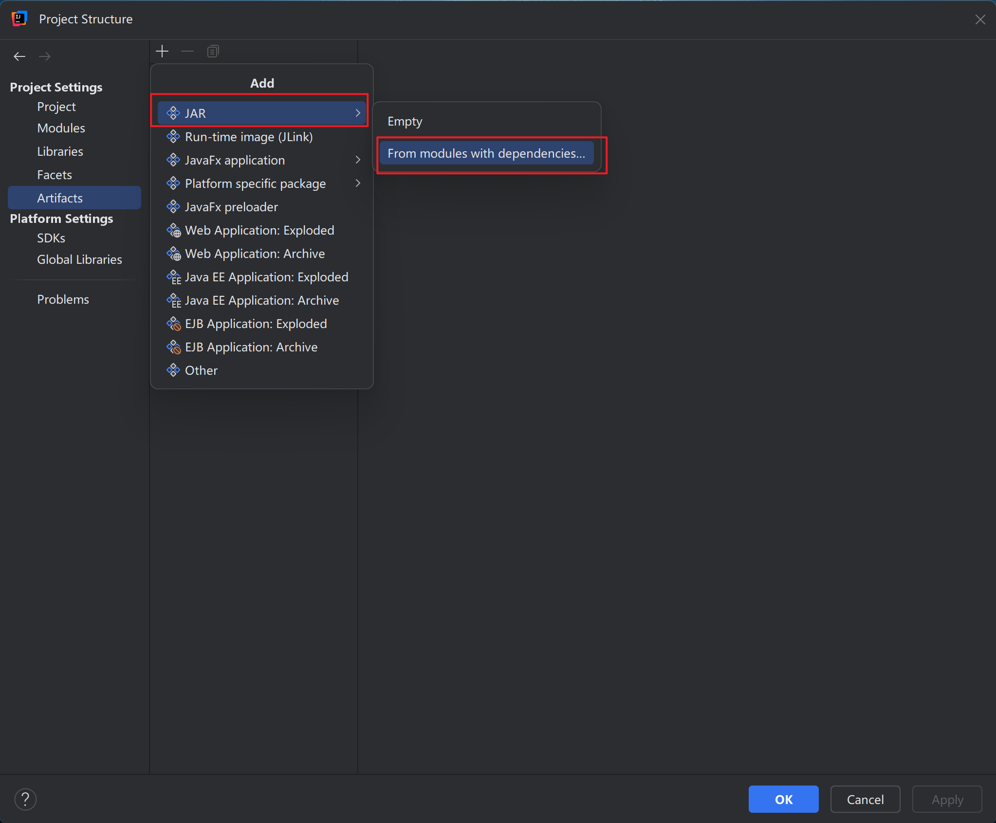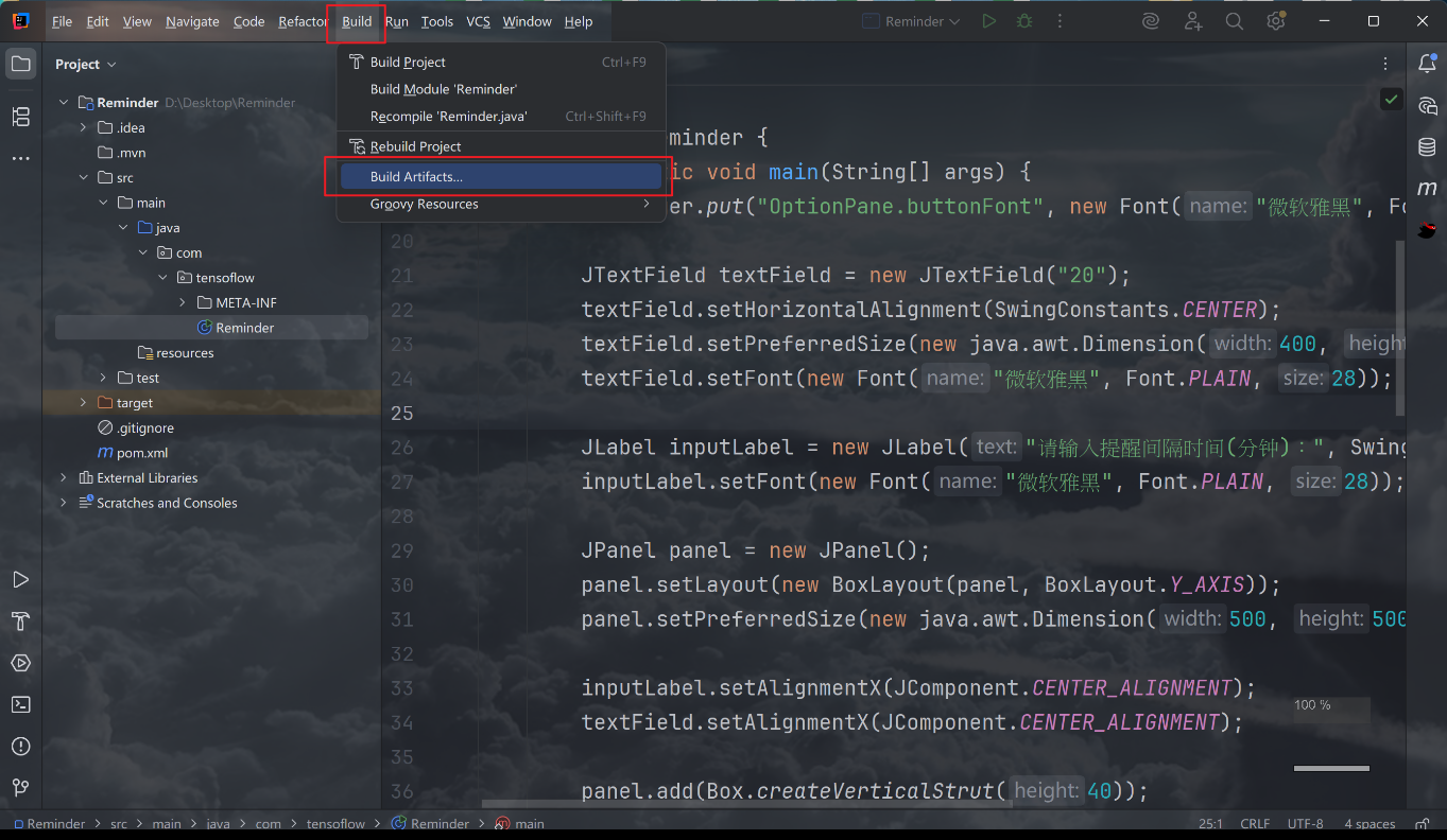 利用exe4j将Java程序转为exe可执行文件需要在Idea中将我们写的代码先转为Jar包。以下是在Idea中将代码打包为Jar包的方法。