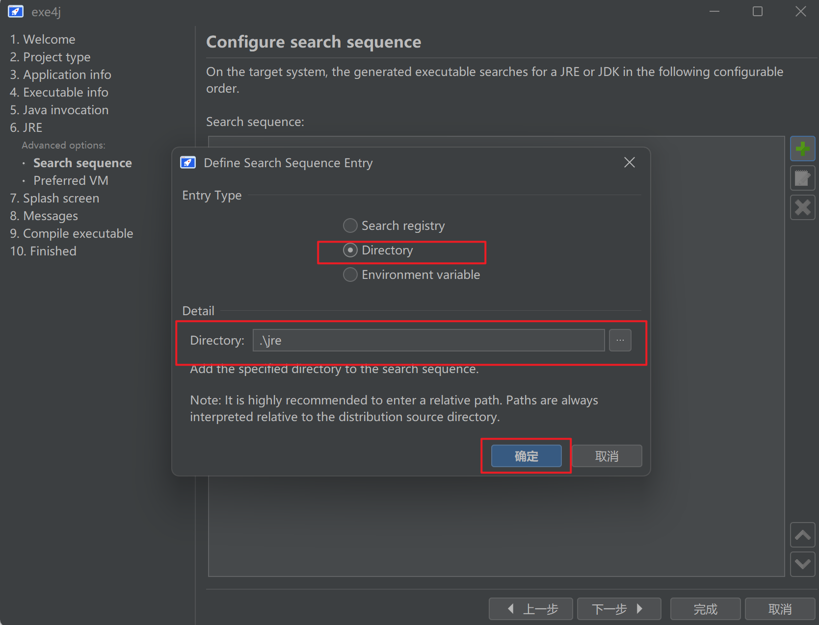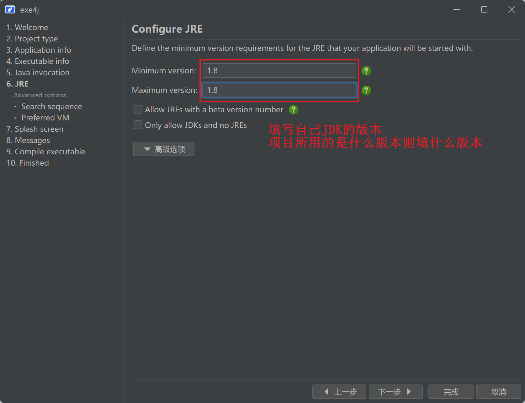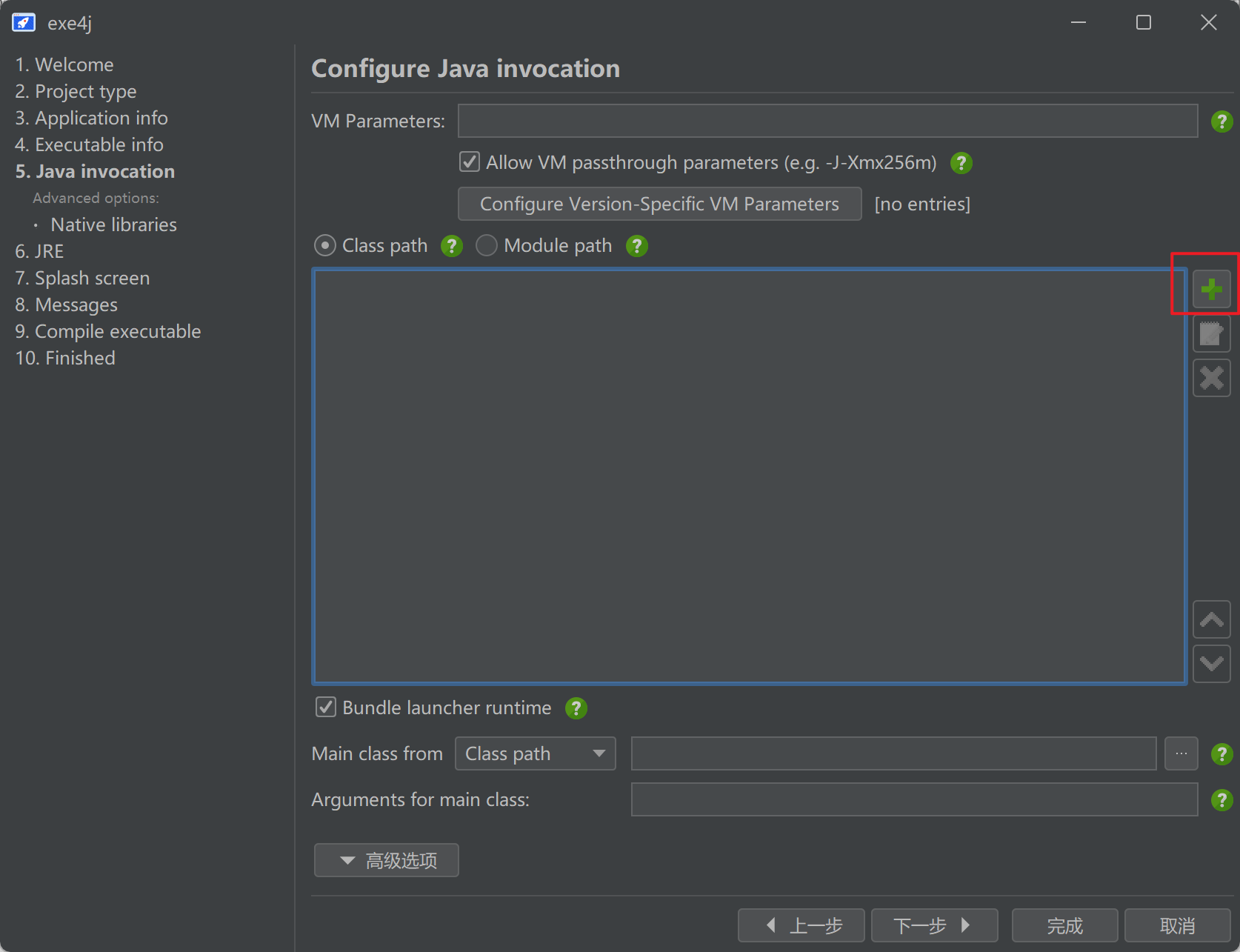 这里默认设置的是找本地Java环境变量中的JDK来运行程序,但是我们需要在没有Java环境的电脑中也能运行。需要把上面三个全部 x 掉。依次点击三项,并点击右边的 x。