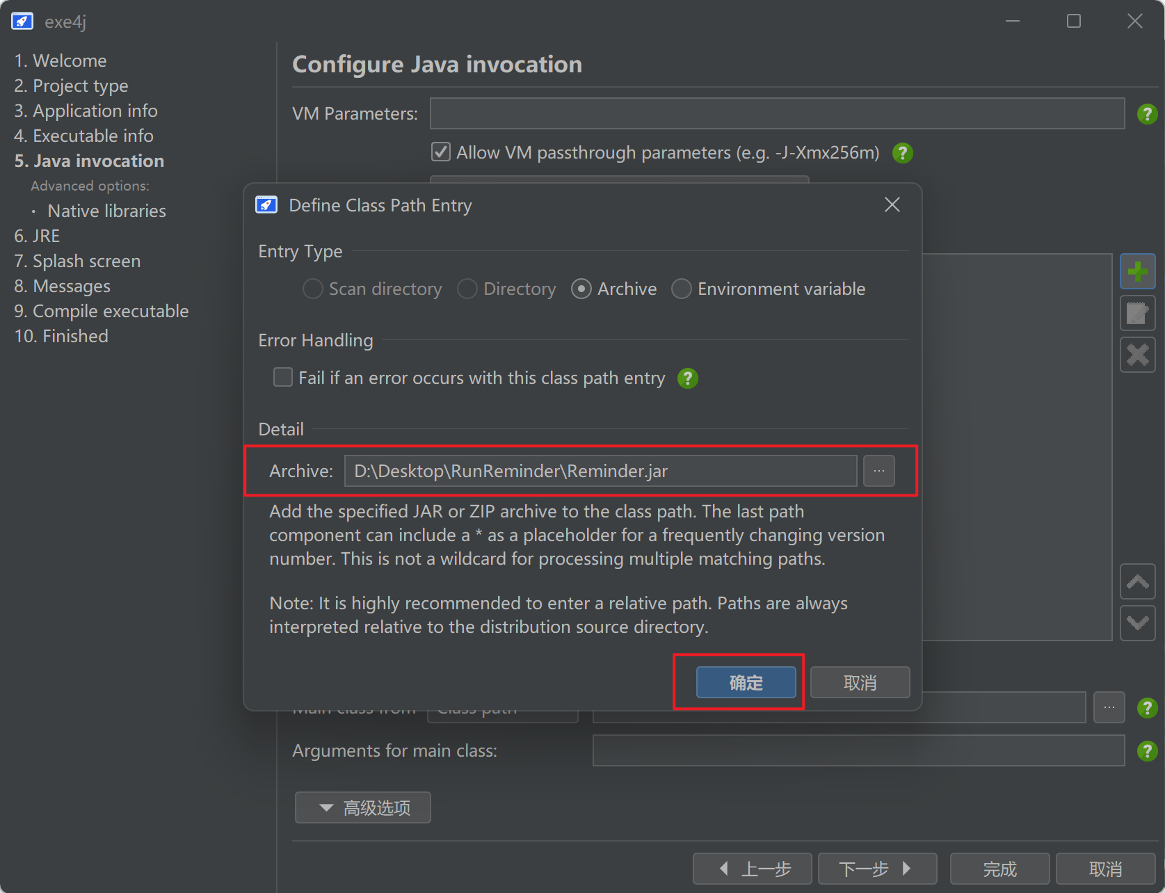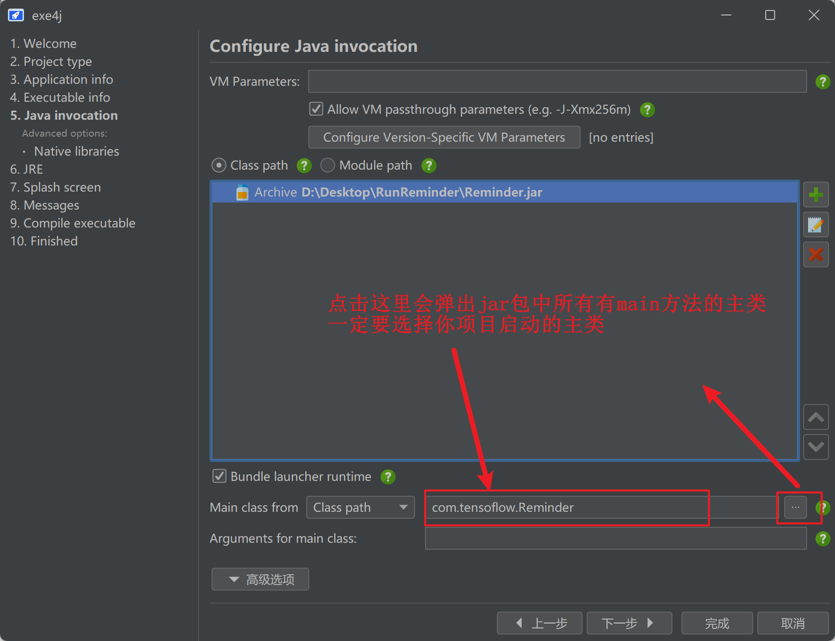 只有主类Jar包需要配置启动类,第三方Jar包不需要,配置启动类之后,如果有第三方Jar包,全部都要按照之前引入主类Jar包一样全部引入。这里我没有第三方Jar,就不演示了。全部引入之后点击下一步。